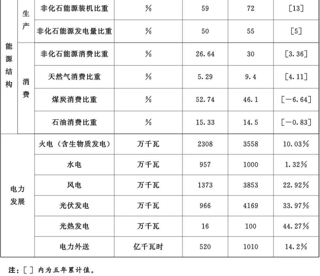 ——能源清洁化水平明显提高。可再生能源发电装机占电力总装机超过65%,非化石能源占能源消费总量比重达到30%,可再生能源发电量达到全社会用电量的60%左右。完成可再生能源电力消纳责任权重50%以上和非水电可再生能源电力消纳责任权重23%目标任务。
