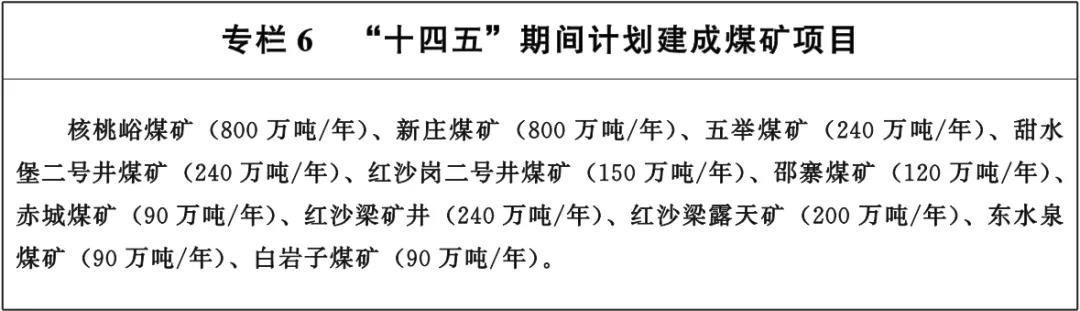 1.优化煤炭生产布局,着力提高全省煤炭供给能力。“十四五”期间,重点建设华亭、灵台、宁正、沙井子、吐鲁、宁西等矿区。按照绿色化、智能化产业发展的要求,建成核桃峪、新庄、五举、甜水堡二号井、红沙岗二号井、邵寨、赤城、白岩子、红沙梁、东水泉等一批大中型现代化矿井,力争开工建设九龙川、罗川、马福川、唐家河、郭家台等重点煤矿项目。到2025年,全省生产煤矿产能总规模达到8900万吨/年,其中大中型煤矿产能占88%以上,陇东能源基地煤矿产能占55%。